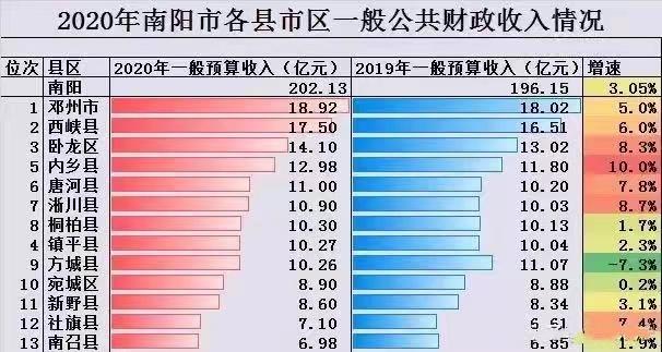 2020年鄧州市財政收入達(dá)18.92億元排在全市首位,同比2019年增速達(dá)5%,地區(qū)經(jīng)濟(jì)實現(xiàn)了較快復(fù)蘇態(tài)勢。三大產(chǎn)業(yè)的較快發(fā)展是鄧州財政收入的主要來源,特別是以農(nóng)副產(chǎn)品價格、輕紡等為主的第二產(chǎn)業(yè)發(fā)展是地方財政的主要貢獻(xiàn)極,地區(qū)強化產(chǎn)業(yè)結(jié)構(gòu)優(yōu)化升級,地區(qū)企業(yè)運行質(zhì)量較高。 2020年西峽縣財政收入達(dá)17.5億元排在全市第二,財政增速達(dá)6%,進(jìn)一步縮小與鄧州市財政收入差距,地區(qū)經(jīng)濟(jì)呈現(xiàn)快速發(fā)展勢頭。以中藥制藥、煉鋼及煉鋼輔助材料、汽車配件鑄造為首的工業(yè)產(chǎn)業(yè)集群是地區(qū)經(jīng)濟(jì)發(fā)展和財政收入等基礎(chǔ),推動地區(qū)發(fā)展。臥龍區(qū)、內(nèi)鄉(xiāng)縣等區(qū)縣市地區(qū)2020年財政收入均處在10億元以上規(guī)模水平,其中內(nèi)鄉(xiāng)縣2020年財政增速最快達(dá)到了10%,方城縣是全市唯一一個財政呈現(xiàn)小幅度下滑趨勢的地區(qū)。