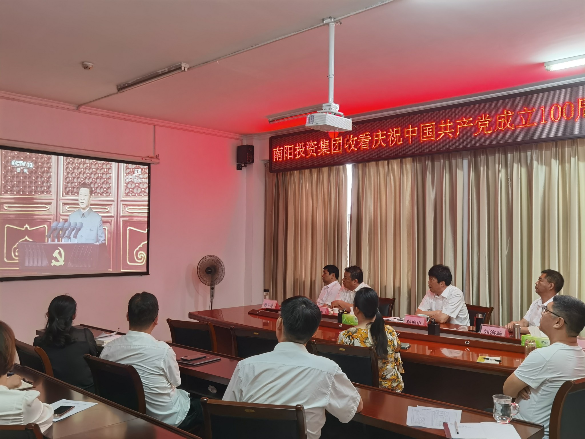 2021年7月1日上午8時,南陽投資集團全體黨員收看慶祝中國共產(chǎn)黨成立100周年大會,認真學習習近平總書記在大會上的重要講話精神。