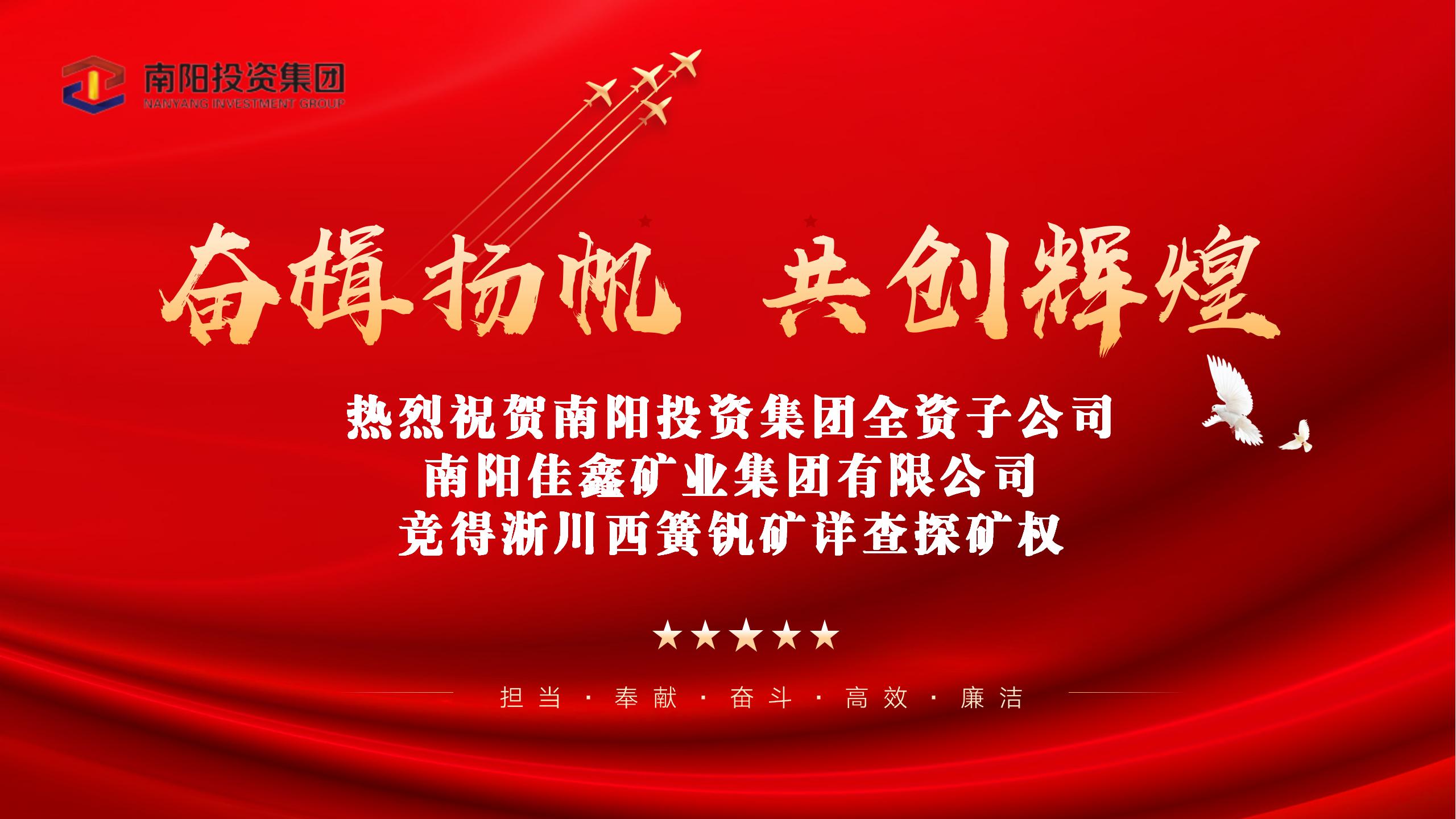 近日,南陽投資集團全資子公司南陽佳鑫礦業集團有限公司以17365.76萬元成功競得淅川西簧釩礦詳查探礦權,深入貫徹落實了市委市政府將更多核心礦產資源掌握在市屬國資體系的指示精神,進一步壯大國有資產,加快市屬國有企業市場化轉型發展,助力了政府施政施策、推動區域產業結構升級的實際工作需要。