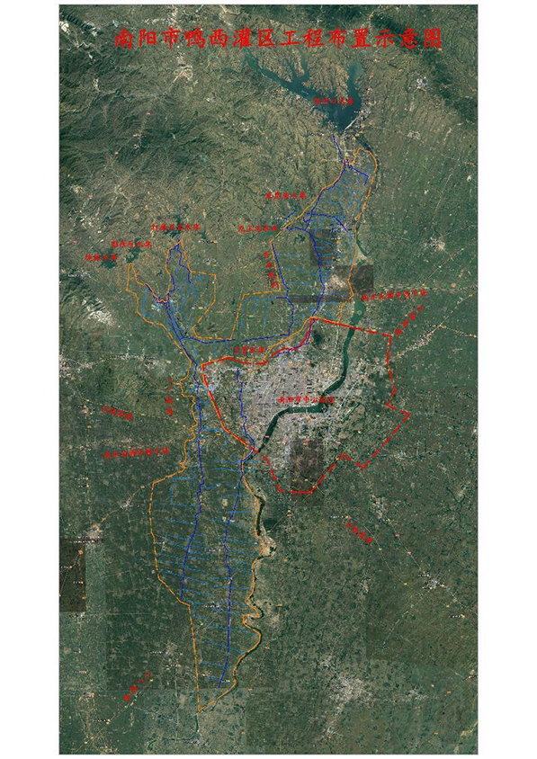 擬建鴨西灌區具體范圍:東到白河(南陽城市規劃范圍外),西至潦河和礓石河,北起鴨河口水庫和既有中型水庫灌區北邊界、南至臥龍區與新野縣縣界。灌區涉及職教園區、臥龍區、鎮平縣等的12個鄉鎮,設計灌溉面積50萬畝,受益人口近60萬。