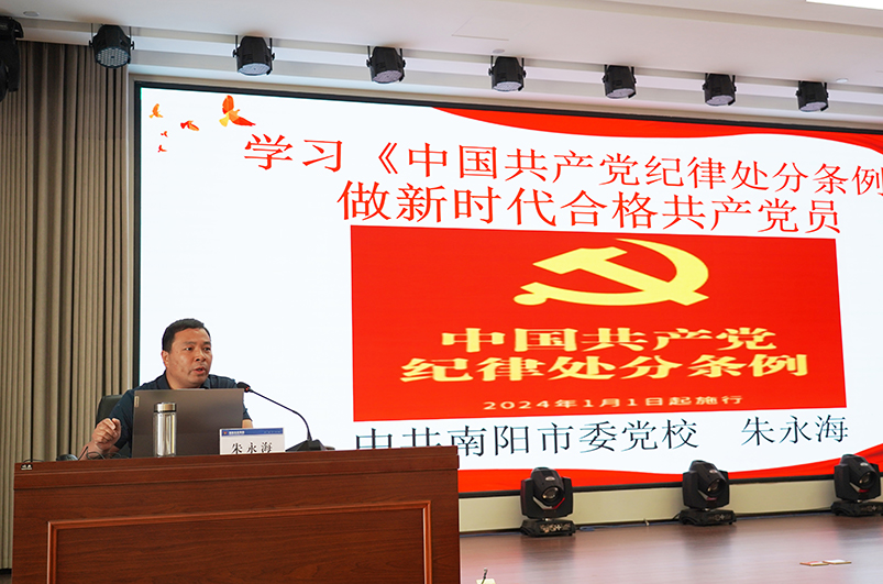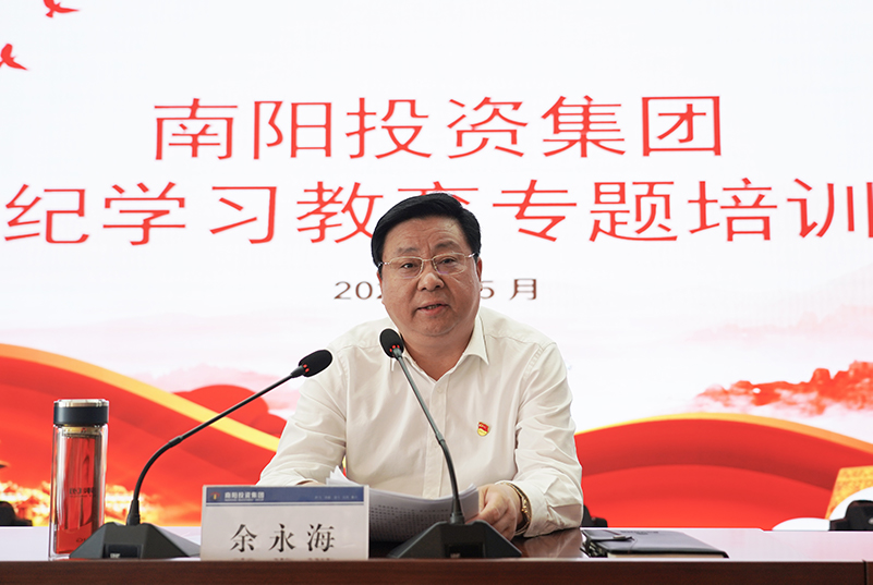 為深入學習貫徹習近平總書記關于黨紀學習教育的重要講話和重要指示批示精神,加強黨的紀律建設,扎實推動黨紀學習教育走深走實。5月28日,南陽投資集團舉辦黨紀學習教育專題培訓會,邀請市委黨校黨的建設教研室副主任朱永海作專題輔導。集團黨委書記、董事長余永海,市紀委監委駐市管國有企業第一紀檢監察組組長馬馳出席會議,集團黨委副書記、監事會主席韓玉奇主持會議。