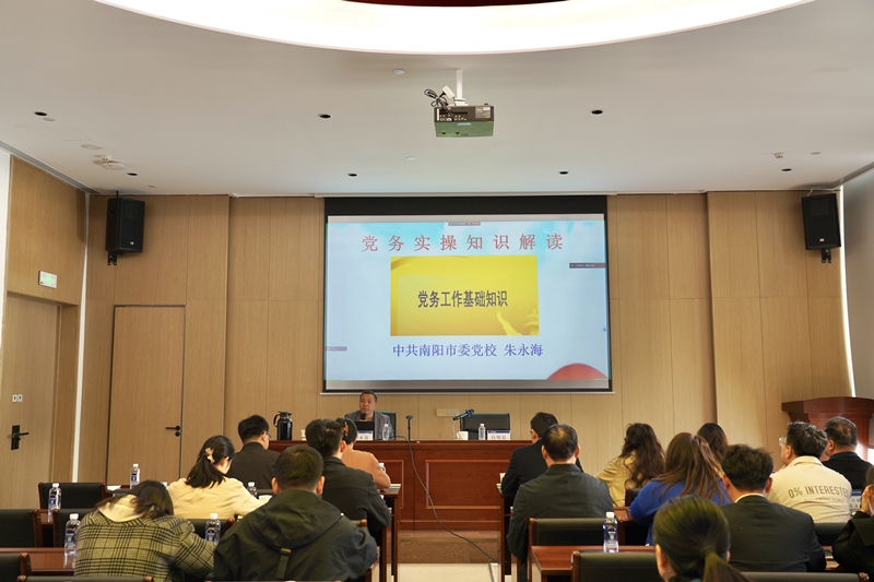 會議邀請中共南陽市委黨校黨建教研室副主任朱永海教授作專題培訓。朱永海教授圍繞黨員發展、黨內組織生活開展、黨組織換屆、五星支部建設等方面,對相關理論知識和實操內容進行了詳細解讀,主題鮮明、內容豐富,既有簡明直觀的理論闡釋,又有具體生動的案例分析,大大提升了集團黨務工作者對黨建知識和工作開展的理解把握。