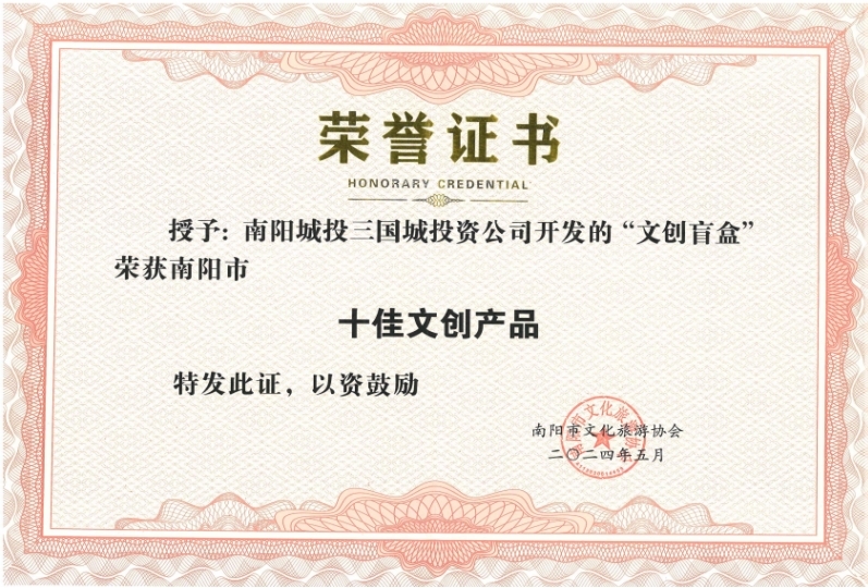 2024年南陽市文化旅游協會第四屆四次理事會于5月30日上午隆重舉行。臥龍崗景區以卓越的服務質量、創新的研發理念、文明旅游工作的示范帶動作用,榮獲我市2023年度“十佳旅游景區”“十佳文創產品”雙榮譽稱號。