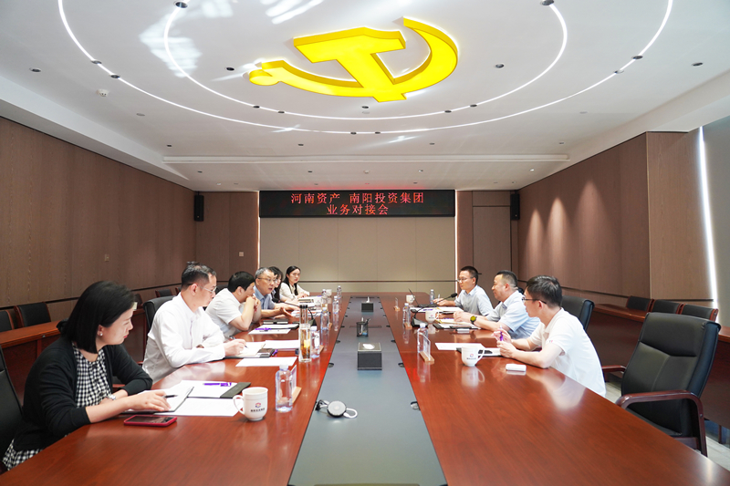 8月21日,南陽投資集團與河南資產管理有限公司(以下簡稱:河南資產)召開業務對接會。河南資產副總裁薛志鵬、資產重組一部總經理張宇,集團黨委副書記、監事會主席韓玉奇,黨委委員、副總經理崔天杰參加會議。